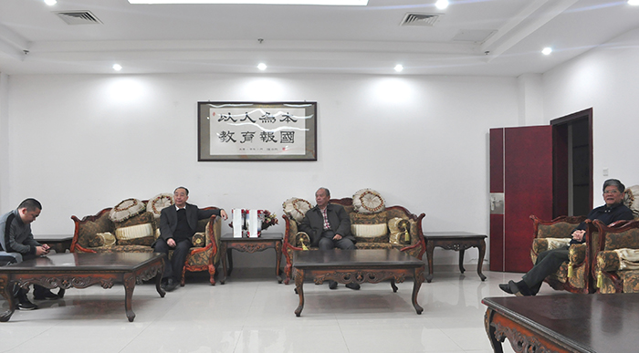 3月16日,加拿大厦门海外联谊会名誉会长、厦门市陶行知研究会会长陈闽杰,厦门城市职业学院纪委书记易化一行参访我校,我校升本办顾问潘世平在接待室热情接待。