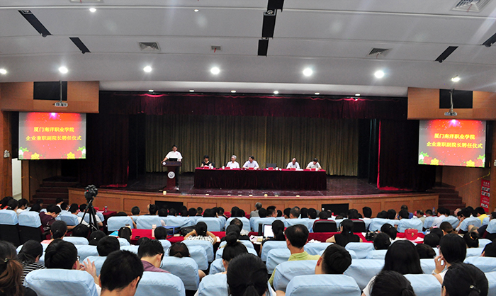 2017年5月31日,我校举行企业兼职副院长聘任仪式,包括厦门蓝点子广告有限公司董事长召金、厦门市物联网行业协会会长赵善仁在内的7名行业企业高层管理人员、高层技术人员,先后从董事长、执行校长鲁加升教授的手中接过聘书,正式成为我校7个二级学院的兼职副院长。