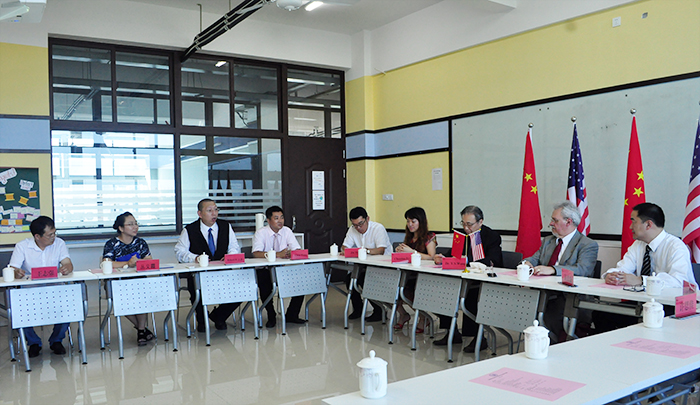 我校校长王豫生,教学科研处处长李春桃,党政办公室主任田瑾,经济管理学院执行院长王晨,对外合作处副处长纪华杰等在实训大楼菲尔德国际学校会议室接待了美国库克大学校长贺睿拉博士,美国库克大学中国总校区校长黄磊康博士,库克大学厦门办事处刘丽霞、汪慧贞、蔡华艺、许思佳一行六人, 校长王豫生简要介绍我校的办学情况,双方就将来双方合作的有关问题交换了意见,签订了姊妹校合作协议。