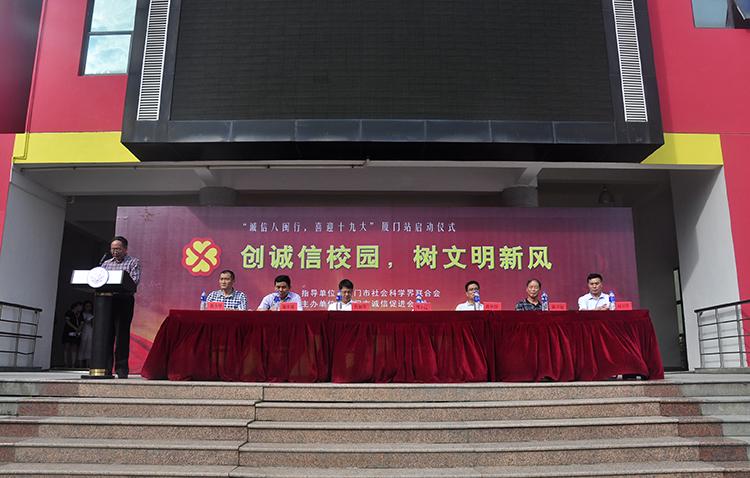 6月21日,“创诚信校园,树文明新风”主题活动启动仪式在我校举行。厦门市社会科学界联合会副主席陈怀群,厦门市人大城建环资委原主任、厦门市诚信促进会会长傅子仪,诚信促进会执行副会长兼秘书长陈少华,翔安区工商联秘书长陈幸福及我校领导鲁加升、施水成、何卫华等出席启动仪式。此项活动由厦门市社会科学界联合会指导,厦门市诚信促进会主办,厦门市诚信促进会与tyc1286太阳成集团承办,旨在引导广大青年学生深入践行社会主义核心价值观,营造诚实守信的校园文化氛围。
