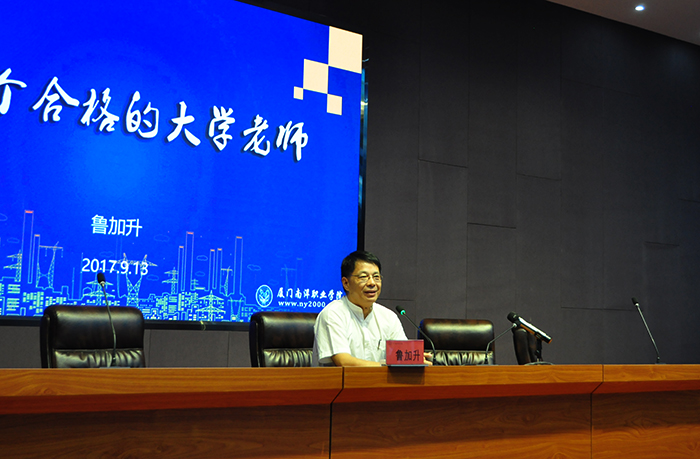 董事长、执行校长鲁加升以《做一个合格的大学老师》为主题对全体教师提出了立德树人、甘为人梯、不断自省等职业道德要求。他认为学校的一切工作是为了培养人才,而教师是人才培养的关键所在,做一名合格的老师不仅要关爱学生、用心教学,而且应不断自省,把做一名合格的老师当作一项大课题来研究。全体教师应牢记学校“以人为本、全面育人、特色办学”的办学理念,扪心自问、虚心受教,向着升本目标前进、前进、再前进。