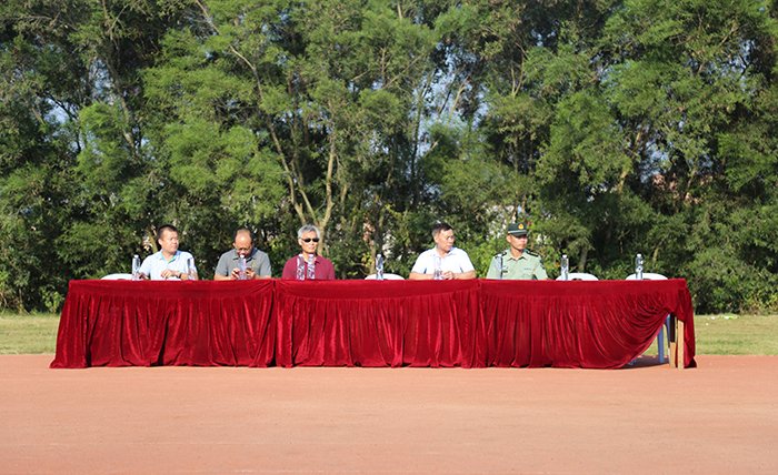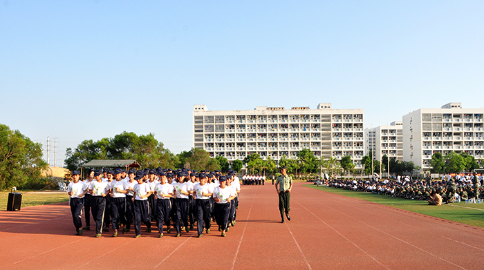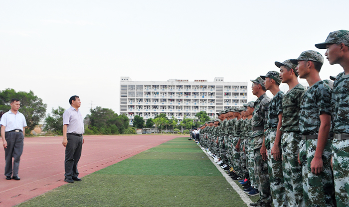 9月27日下午,我校在田径场隆重举行2017级学生军训会操暨入学教育。校领导施水成、何卫华、张东宏及承担我校学生军训任务的海防某连指导员出席大会。学工处处长李振杰主持大会。