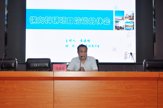 图为袁建畅教授在作《横向科研项目洽谈的体会》主题讲座