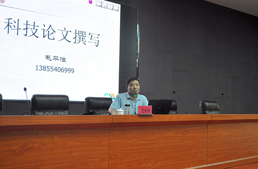 图为毛平淮教授在作《科技论文撰写》主题讲座
