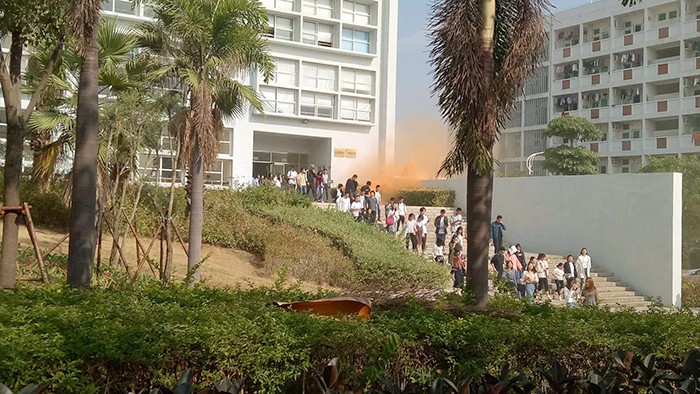 为增强全校师生员工扑救初起火灾、组织疏散逃生能力,结合我校今年“消防安全宣传教育月”活动,11月9日,学校安全稳定工作领导小组在教学楼认真组织开展了一场火场逃生、应急疏散演练及模拟灭火演练,我校综治副校长、厦门市教育局观察员陈毅峰莅临现场观摩指导。