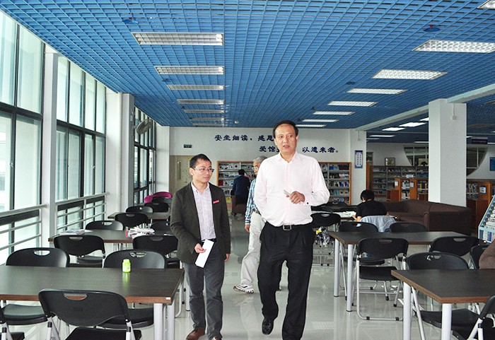 赵超董事长一行先后参观了我校科研实验实训大楼、创业活动中心、图书馆,对我校的办学规模与校园环境表示赞赏。