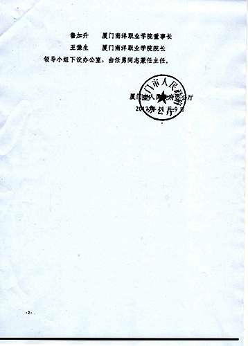 日前,厦门市人民政府正式发文调整高职院校改革发展暨专升本工作领导小组组成人员,组长由副市长国桂荣担任,市政府副秘书长吴伟平、教育局局长郭献文任副组长,成员有市政府各相关职能部门人员及我校董事长鲁加升、校长王豫生等,市教育局巡视员任勇兼任办公室主任。