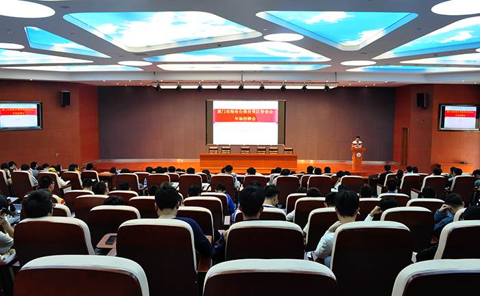 这些高大上的企业为什么选中我校来举办招聘会?原来,是海沧台商投资区管理委员会作“红娘”。11月16日下午,海沧台商投资区管理委员会副主任张善美一行来校洽谈合作,对我校的办学条件、办学规模、内涵建设提升等极为赞赏。为贯彻十九大精神、落实习近平新时代中国特色社会主义思想,本着主动作为、服务区内企业的愿望,双方在开展人才培养与服务地方等方面达成了共识,于是便有了这场高端招聘会。