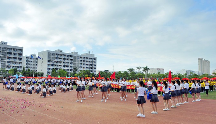 入场式后,校长王豫生宣布“tyc1286太阳成集团第12届运动会开幕”,运动场上奏响了雄壮的国歌。