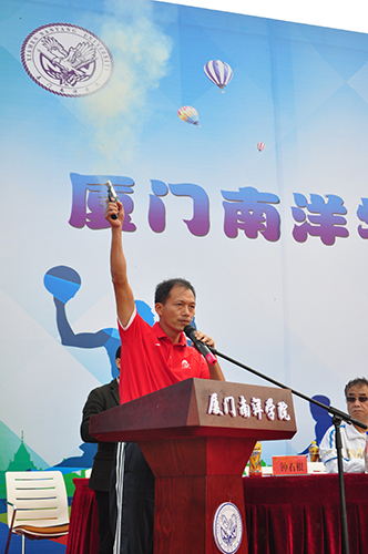 党委书记、副校长施水成在致辞中指出,一个优秀的人才除了应该具有较高水平的专业知识、实践能力,还要求有健全的人格、健康的身体。而体育运动不仅可以增强人们的身体素质,而且可以培养我们的团队精神,增强我们的自信心,锻炼我们的抗挫折能力。他希望运动员们能在努力争取优秀成绩的同时,做到讲文明、讲友谊、讲风格;全体裁判员忠于职守,公正执法;全体工作人员坚守岗位,团结协作,为运动会提供最坚强有力的保障。