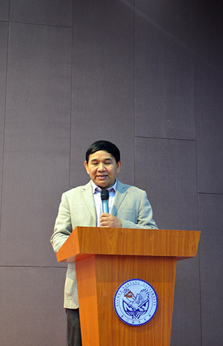 在学术报告厅,我校党委书记、副校长施水成发表了热情洋溢的欢迎辞。他指出,高校之间的交流与合作是促进高等教育整体发展的有效途径。他希望两所学校在未来有更多的合作往来,共同进步。