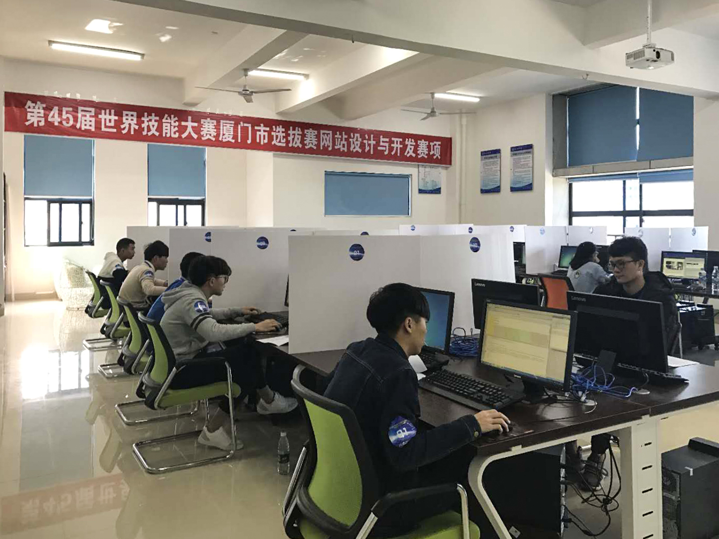 此项竞赛主题是网站设计与开发,共有来自厦门南洋学院、厦门技师学院,厦门华天学院、厦门信息学校、厦门同安职校18名选手参赛,分别从网站的设计布置、色彩搭配、编程规范、功能实现等方面展现技能。