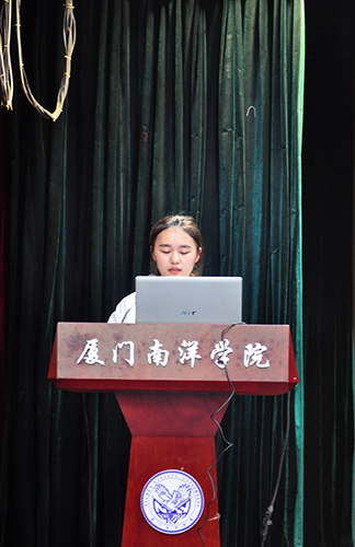 艺术设计学院党总支学生党支部-17建筑室内设计班许碧莲同学代表党校第33期培训班新学员发言。她表示要坚决拥护中国共产党的路线、方针和政策,在思想上、政治上、行动上和党中央保持高度一致,准时参加学习,认真听讲,勤于思考,积极参与讨论。从党校结业后要在平时的学习生活中,切实起到先锋模范带头作用,处处做表率。