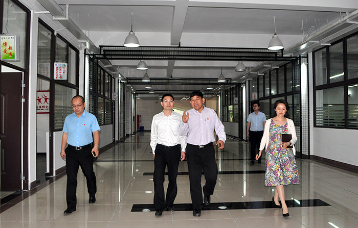 在教学楼前,施水成书记汇报了学校党委创建党建“一二三”模式,提升组织育人功能,介绍了“每名党员挂钩一间教室、两间宿舍、三名学生”的具体内容。