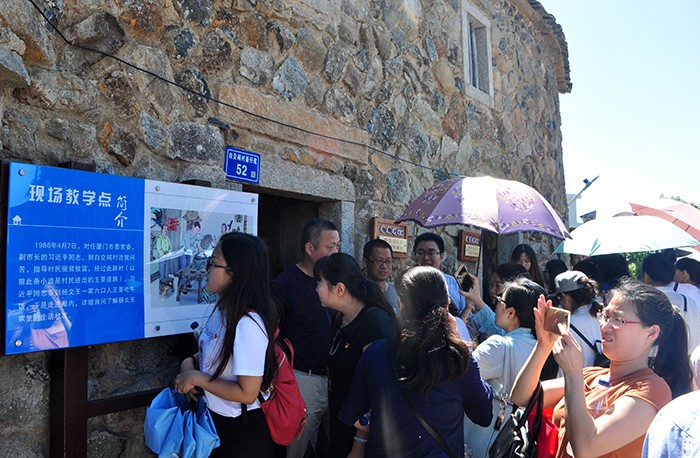 在军营村,党员们重走习总书记走过的路,重温习总书记的叮嘱,重见习总书记入户问暖的情景,在走乡入户、寻访调研中感受习总书记的爱民情怀,见证经过“五位一体”建设出现的新农村形象:水泥路宽阔整洁贯穿全村,青山绿水护佑村庄楼宇,90高龄的老人树下促膝笑谈,“农家乐”“民宿”乡村游随处可见……村党支部书记杨明福的介绍满怀感激之情:“习总书记30年前提出的‘山上戴帽、山下开发’,与十九大报告中提出的‘绿水青山就是金山银山’一脉相承。我们村就是按照习总书记当年来调研时提出的脱贫思路,在山上植树造林、防风固土,在山下整治环境、完善设施,才使 300多户1200多名村民脱贫至富。”