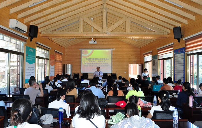 在白交祠村高山党校教室,党委委员、党政办主任李振杰带领党员们庄严重温入党誓词。宣誓后,党委书记施水成发表讲话,告诫党员们要始终不忘入党初心,牢记党员使命;要领悟总书记“四下基层”“四在一线”的工作方法,在实际工作中加以应用;要理解学校转型升级期的改革举措,分担学校遇到的困难,努力为学校的发展添砖加瓦、创先争优。