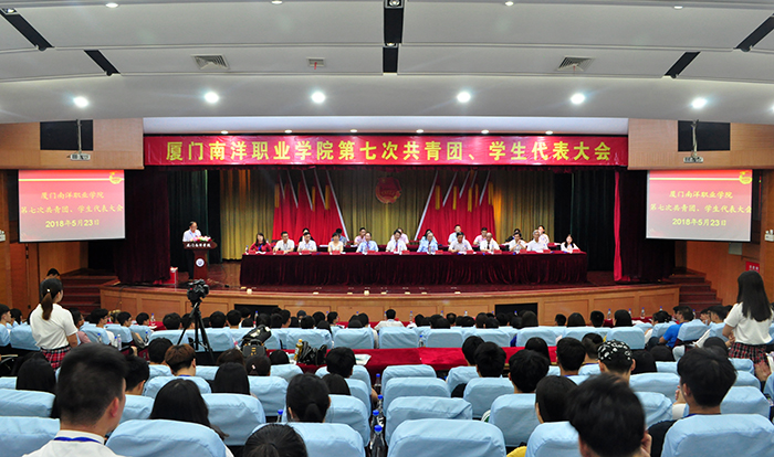 5月23日下午,厦门南洋学院第七次共青团、学生代表大会在学生活动中心礼堂隆重召开。校领导王豫生、鲁加升、施水成、康乃美、潘世平、张东宏、何卫华,团市委学少部部长助理李新元、团区委书记郭闻文出席会议,厦门东海职业学院、厦门安防职业学院、厦门演艺职业学院、厦门工学院、厦门华天涉外职业学院等兄弟院校团委也派出代表到会祝贺,学校党委全体委员、各二级学院党总支书记、校团委委员、各部门负责人参加会议,全体代表共计379人参加会议。