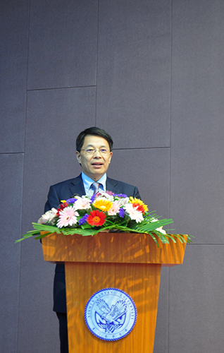 厦门南洋学院董事长、执行校长鲁加升教授作即兴主旨演讲,以南洋学院勤工助学育人模式为切入点,阐述全人教育在南洋学院的实践。