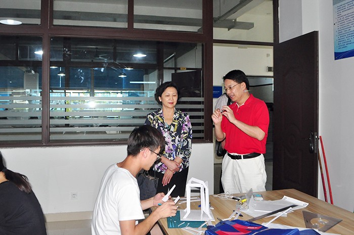 詹心丽副校长先后参观了橱柜学院、外国语与旅游学院、建工学院、艺术学院等。她一边兴致勃勃地观看学生制作的建筑模型和时装及中西餐摆台,一边详细询问学生的就业情况,并感叹道,南洋的毕业生抢手名不虚传啊!她表示,所谓培养学生的工匠精神,其实就是培养学生的动手能力并且引导学生把事情认真做好,南洋在这方面值得学习。