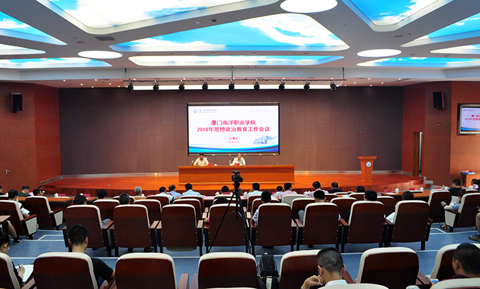 6月13日下午,厦门南洋学院在仙岳报告厅召开2018年度思想政治教育工作会议。校长王豫生作主题报告,董事长、执行校长鲁加升讲话,党委书记施水成主持会议并讲话。常务副校长康乃美、副校长张东宏及党委委员出席会议,各党总支书记、支部书记、团委委员、副科级及以上干部、辅导员、班主任、思政课教师参加会议。