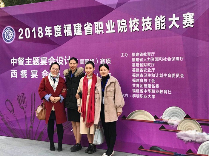 在培养学生方面,本专业以许爱云老师的“六化”训练模式为基础,根据训练内容课程化、指导教师团队化、训练选手梯队化、训练方式多样化、训练管理规范化和训练资料信心化,培养学生的综合素质,在历年的技能竞赛中,都获得了骄人的成绩。尤其是在2018年福建省职业院校技能竞赛中,外国语与旅游学院学生参加了7个赛项的比赛,取得了优异成绩。