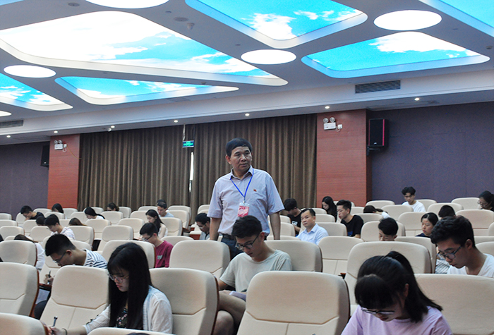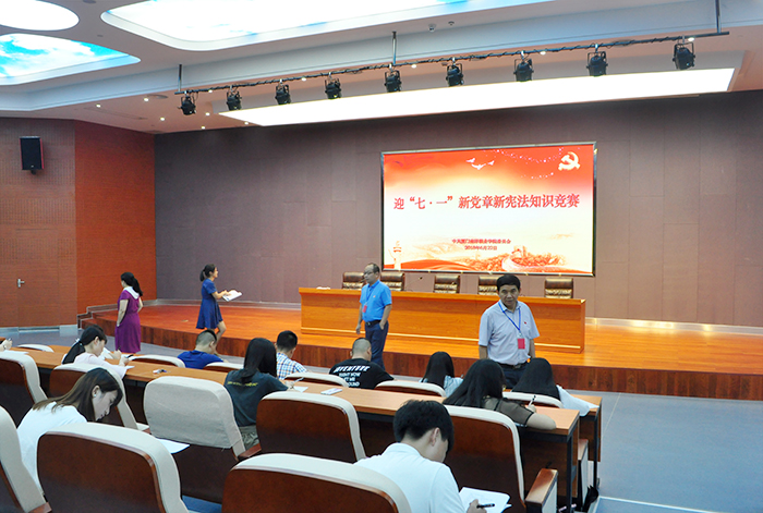 南洋社讯 今日(6月22日)中午,厦门南洋学院举行迎“七•一”新党章新宪法知识竞赛,校党委委员担任监考,全校师生党员在仙岳报告厅用一个小时的时间检验自己对新党章新宪法的学习效果。