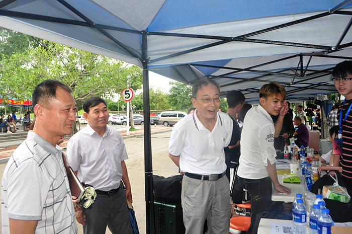在机电工程学院,当看到正在办手续的新生是由家长陪同来的,王豫生校长和蔼地问这名新生有没有能力独自来报到,一旁的家长赶紧上前说,孩子自己来没问题的,关键是我们做家长的也想来看看学校啊!