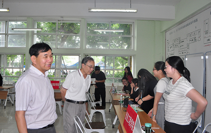南洋社讯 今日(8月30日)下午,厦门南洋学院校长王豫生、党委书记施水成来到新生报到处看望前来报到的2018级新生。