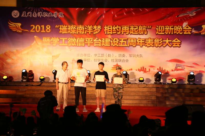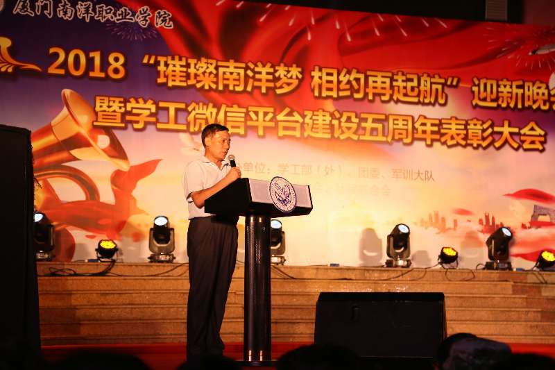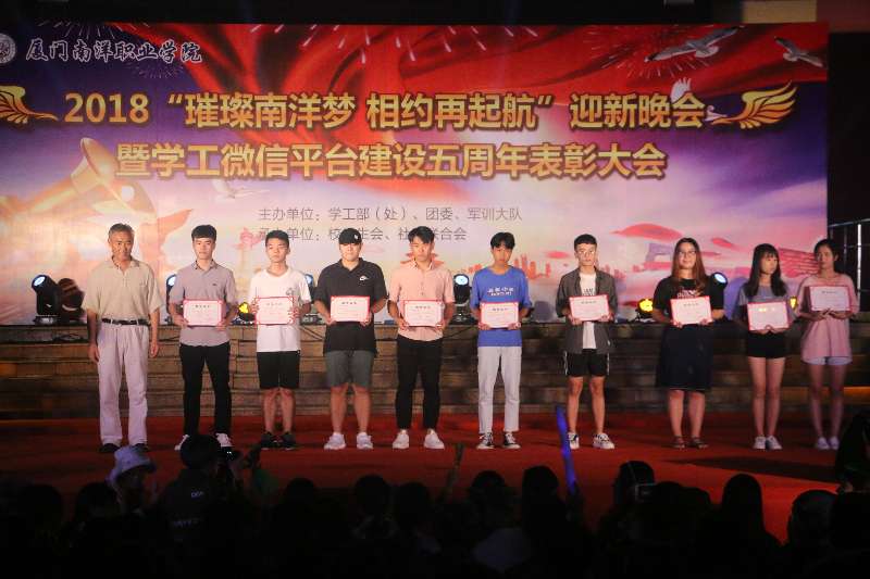 南洋社讯 近日,厦门南洋学院学工微信平台建设5周年表彰大会在时代广场举行。校领导王豫生、张东宏、何卫华、钟石根出席大会。