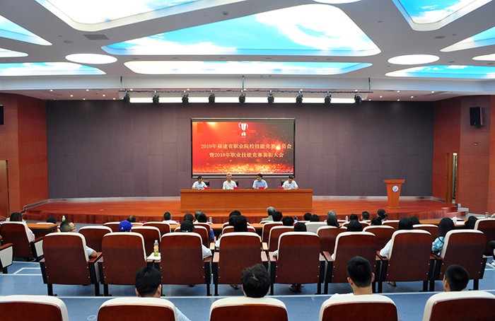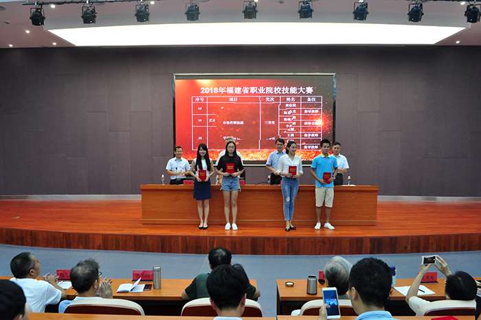 出席会议的校领导为在第45届世界技能大赛厦门市选拔赛网站开发与设计项目竞赛和2018年省赛中获奖的参赛学生与指导教师颁奖。参赛学生代表与指导教师代表分别发表了获奖感言。