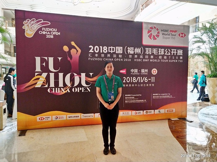 南洋社讯 马头开夜照,鹰眼利星芒。正在福州举行的中国(福州)羽毛球公开赛上,厦门南洋学院陈小莲作为全省唯一来自民办高校的教师,在有即时回放系统(鹰眼系统)的场地执裁。