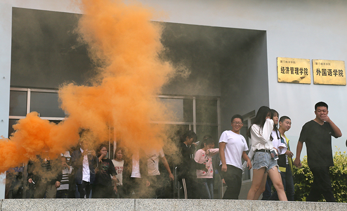 南洋社讯 今日(11月9日)上午,为提高学生消防安全意识,建设安全无隐患校园,厦门南洋学院安全稳定工作领导小组在校内组织全校师生开展火场逃生、应急疏散演练及模拟灭火演练。南洋学院副校长何卫华陪同厦门市教育工会主席郑强现场观摩指导。