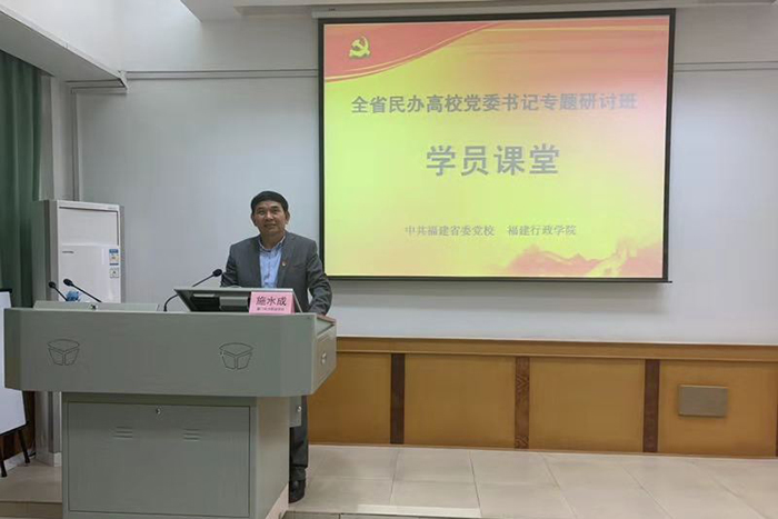 南洋社讯 近日在省委党校举行的全省民办高校党委书记专题研讨班上,厦门南洋学院党委书记施水成为全体学员作了题为“求实创新,让民办高校党建工作与新时代共进”的报告。