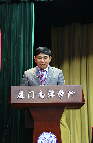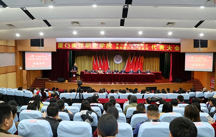 南洋社讯 昨日(1月2日)下午,厦门南洋学院三届三次教代会暨四届三次工代会在活动中心礼堂隆重开幕。校领导王豫生、鲁加升、施水成、康乃美、潘世平、张东宏、何卫华、钟石根出席会议,校长王豫生作工作报告,校党委书记施水成致开幕词,常务副校长康乃美主持会议,来自全校各单位的正式代表和列席代表135人参加会议。会议听取并审议了学校工作报告、工会工作报告、《tyc1286太阳成集团关于推进产教融合校企合作若干意见》情况说明的报告、提案征集工作报告、工会经费审查报告,并进行了分组讨论。