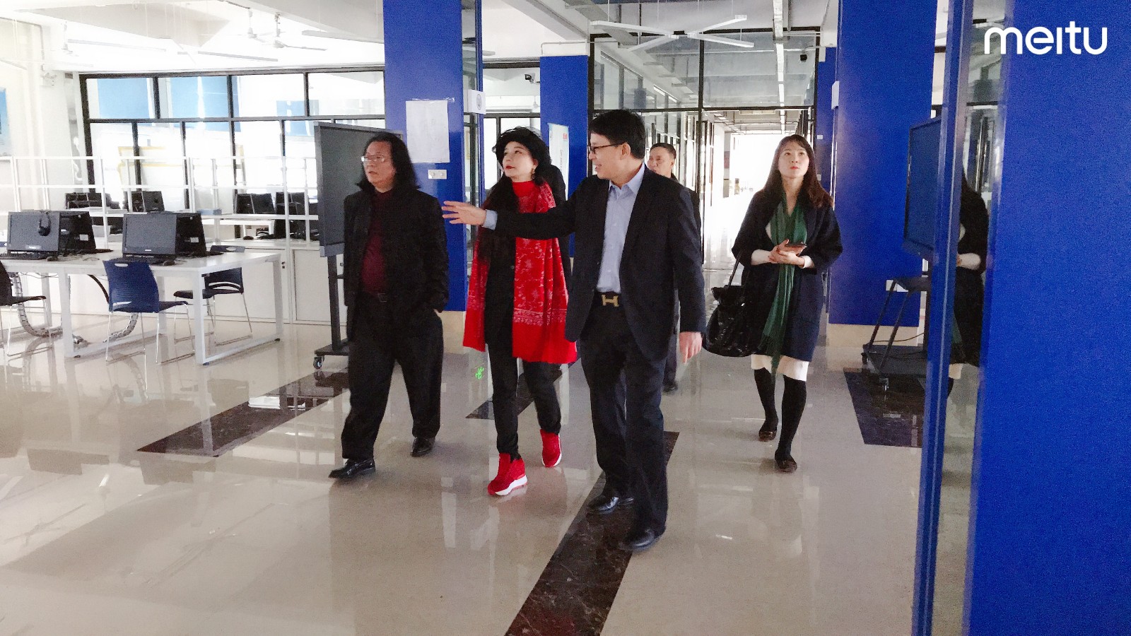 Yanina Kudlik女士及汤蓓华教授一行先后参观了科研实训大楼、学生创业活动中心、图书馆,游览了整个校园,并在图书馆一楼接待室举行会谈。