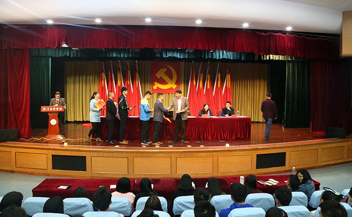 南洋社讯 昨日(3月27日)下午,厦门南洋学院党委在活动中心礼堂举行第35期党校入党积极分子培训班开学典礼暨全校党员大会。党委书记、党校校长施水成出席会议并为全体学员讲授党校开班第一课。党委委员何卫华、李振杰、沈苑、王晨出席会议;何卫华主持会议;全校师生党员、党校第35期入党积极分子、马克思主义读书社成员、习近平新思想读书社成员参加会议。