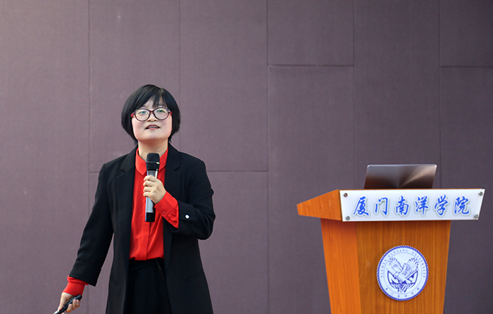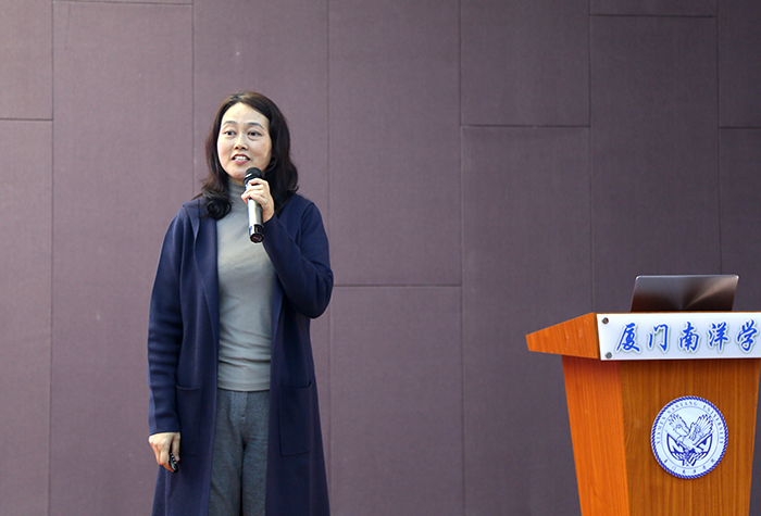 黄文珍老师于2016年参加由福建师范大学和台湾世新大学联合承办的艺术设计类培训。她介绍了“台湾印象”与“台湾文创”,并表示台湾高校师生的礼仪规范、台湾导师的个性化课堂、台湾学生的创意设计均让她深有感触。