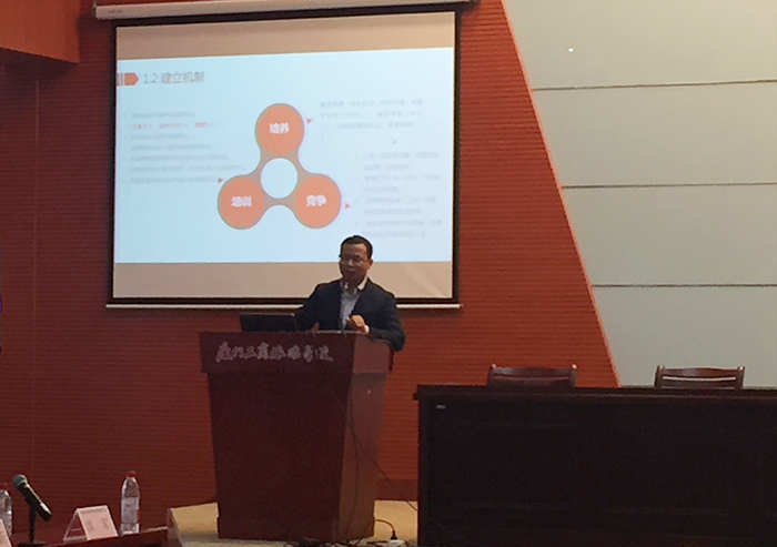 会议围绕“打造新时代职业教育教师队伍”主题开展研讨交流。校长助理钟石根向与会代表着重介绍了南洋教师培养的途径和取得的成效,分析了职业教师队伍的现状和存在的问题,并从政府支持、搭建平台、学校层面、教师层面等方面对厦门市职教队伍建设提出建议。
