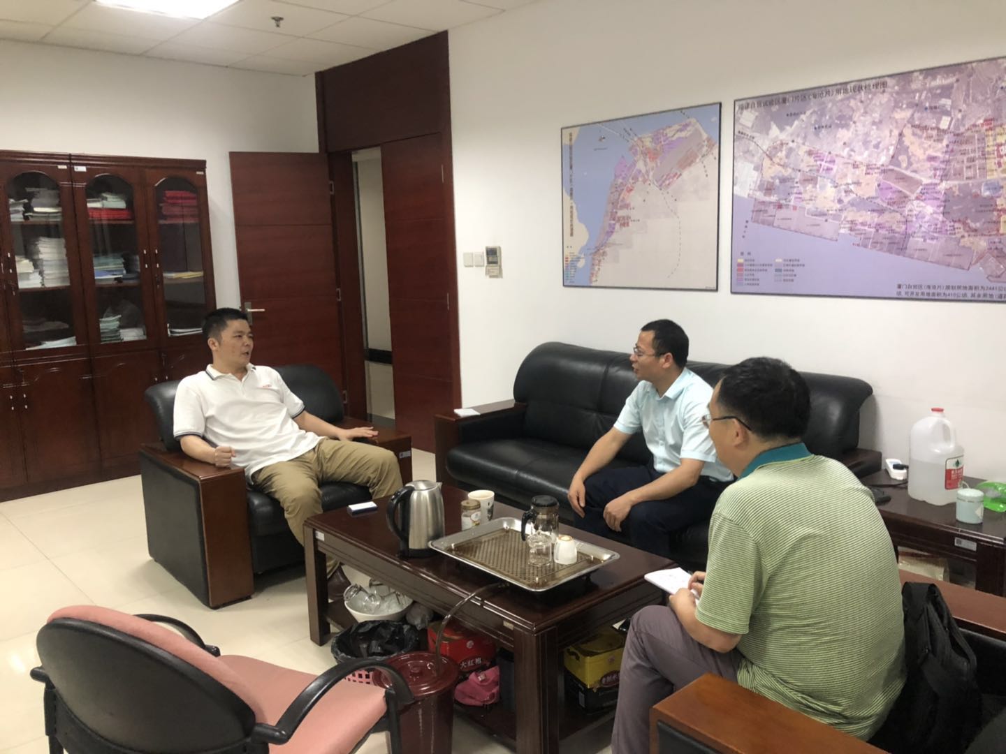 在自贸区厦门片区管委会,钟石根助理重点介绍了国际贸易专业群及国际经济与贸易、电子商务(跨境电商)、物流管理、商务英语专业建设情况。管委会投资促进中心副主任林风元介绍了自贸区定位(包含发展高新技术研发、信息消费、临空产业、国际贸易服务、金融服务、专业服务、邮轮经济等14类)及发展现状。在谈到临空产业重点发展飞机制造、飞机维修、航空服务时,林风元副主任建议学校要加强航空机电维修和航空电子专业的英语训练(六级)和开设葡萄牙语、阿拉伯语等小语种培养贸易人才。厦门自贸区商会李兆阳秘书长则介绍了自贸区企业及用人需求,并指出将组织企业到南洋学院沟通校企合作事宜,开展订单式人才培养。