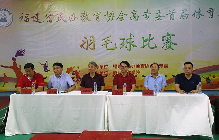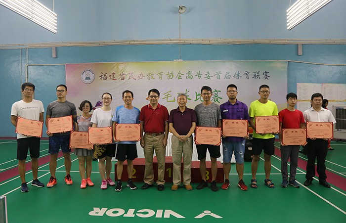 南洋社讯 昨日(6月23日)下午,由厦门南洋学院承办的福建省民办教育协会高专委羽毛球赛闭幕式在翔骏羽综合馆举行。省民协会长袁德俊,省民协副会长、高专委轮值理事长、南洋学院董事长鲁加升,党委书记施水成,常务副校长康乃美出席闭幕式。来自全省10所民办高校的48名运动员、裁判员等参加闭幕式。