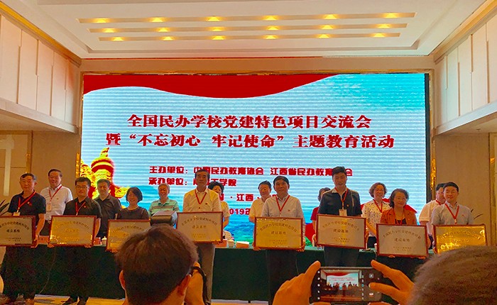 黄小华会长在致辞中介绍了江西省情和民办教育发展情况,并传达了习近平总书记视察江西时的重要指示精神。刘军主任宣读了党建特色项目征集及评选情况,其中南洋学院申报的《创设微信平台,让党建时刻在线》项目,经严格筛选、专家评审后,从全国众多申报项目中脱颖而出,荣获“全国民办学校首批党建特色建设项目”。