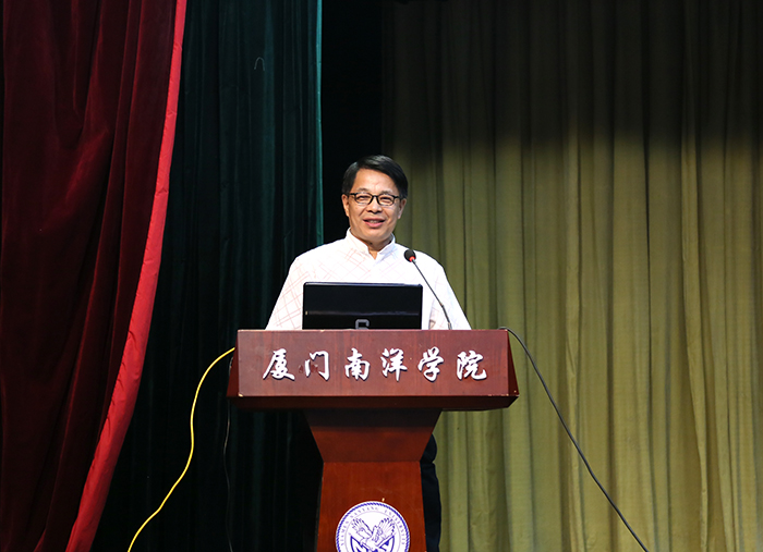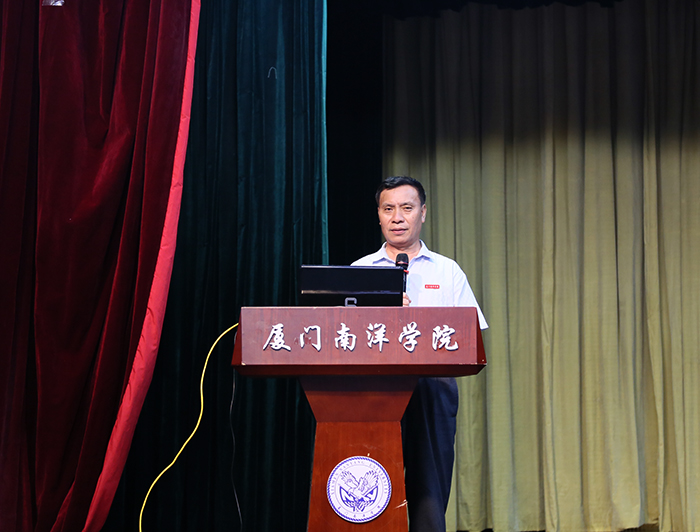 南洋社讯 昨日(7月5日)下午,厦门南洋学院在活动中心礼堂召开2018-2019学年第二学期工作总结大会。校领导王豫生、鲁加升、施水成、康乃美、张东宏、何卫华、钟石根出席会议。董事长、执行校长鲁加升发表讲话,党委书记施水成对学期工作进行小结,副校长何卫华主持会议。全校教职员工、企业代表参加会议。