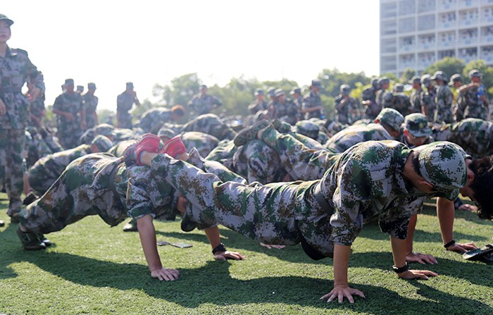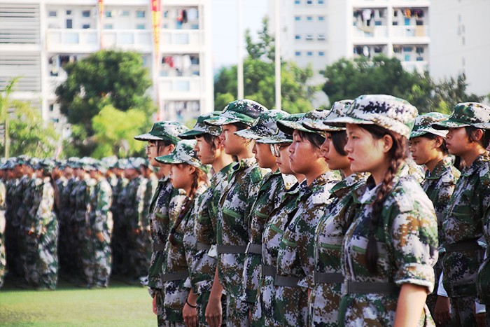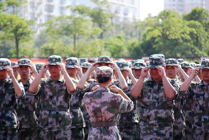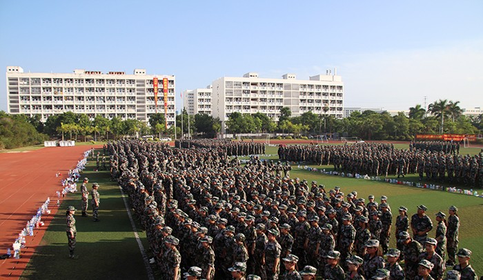 今日(9月10日),热火朝天的南洋大练兵场上,2019级新生们组成的迷彩绿色海洋,成为校园里一道别样的风景线。