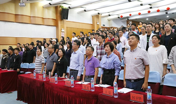 大会在庄严的国歌声中拉开序幕。施水成书记为党校学员和全体师生党员作一堂题为“争创省级文明校园,提升立德树人水平”的主题教育党课。他指出,开展“不忘初心、牢记使命”主题教育,是党的十九大作出的战略部署,是用新时代中国特色社会主义思想武装全党的迫切需要,是推进新时代党的建设的迫切需要,是保持党同人民群众血肉联系的迫切需要,是实现党的十九大确定的目标任务的迫切需要。他结合高校育人实际,深刻阐述了作为新时代共产党人应当如何守初心、担使命,并指出高校要加强爱国主义教育,健全全员全过程全方位育人的体制机制、加强思想政治工作和思政课建设等,着力整改解决基层党组织建设、教师队伍建设、意识形态工作、学生社团工作中存在的突出问题,着力解决群众最急最忧最盼问题,确保主题教育取得实实在在的成效。