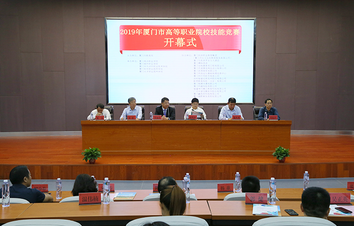 南洋社讯 今日(11月1日)上午9:00,2019年厦门市高等职业院校技能竞赛开幕式在厦门南洋学院仙岳报告厅隆重举行。厦门市教育局高教与职教处处长陈哲新,厦门南洋学院董事长、校长鲁加升,厦门兴才职业技术学院校长郝超,厦门安防科技职业学院董事长、校长陈春,南洋学院党委书记施水成,厦门城市职业学院副校长吴松青出席仪式。陈哲新处长讲话;施水成书记致辞;会议由南洋学院副校长何卫华主持。各高职院校相关负责人,相关行业协会、企业代表,裁判员代表和师生代表参加开幕式。