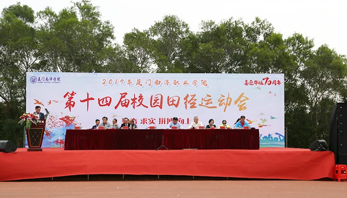 南洋社讯 今日(11月14日)上午,厦门南洋学院第十四届田径运动会开幕式在田径运动场举行。党委书记施水成,副校长张东宏、何卫华及老领导范骏义出席开幕式。施水成书记致开幕词,何卫华副校长主持仪式。相关部门负责人、全校师生参加开幕式。