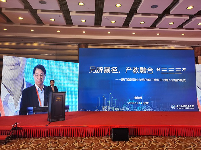 南洋社讯 12月14日,由中国成人教育协会、中国通信工业协会指导,全国轨道交通产教联盟、中国铁道出版社有限公司、中国成人教育协会交通运输教育专业委员会联合主办的2019年智联友道轨道交通产学合作研讨会在北京举行。厦门南洋学院董事长、校长鲁加升应邀出席会议并作题为“另辟蹊径,产教融合‘三三三’”的演讲。