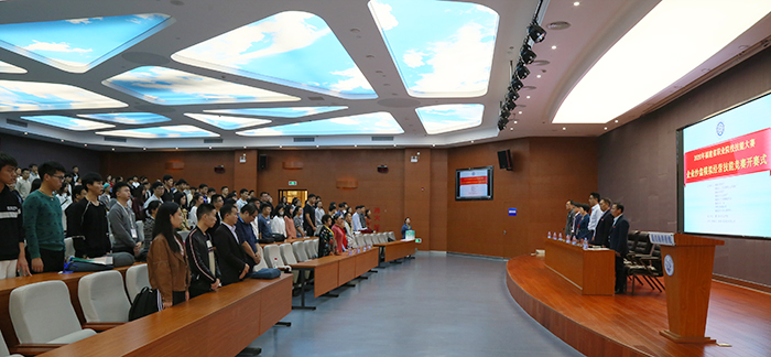 在裁判员代表及参赛选手代表宣誓后,赛项指导宣布企业沙盘模拟经营比赛正式开始!