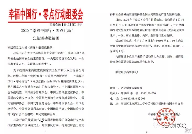 据了解,“幸福中国行·零点行动”是在国家八个部委有关部门的参与指导下,由中国民用航空应急救援联盟、中国应急管理学会、中国卫星导航定位协会、中国道路交通安全协会、中国航空器拥有者及驾驶员协会、中国灾害防御协会、中国气象服务协会、中华环保联合会、中国公路学会、中国社会福利基金会、中国地震学会、中国探险协会等11家社会平台共同组织的公益救授活动。该行动旨在组织全国民间航空应急救援力量,节假日期间在全国范围内执行道路空地应急救援任务,保障群众出行及道路交通运输生产安全。