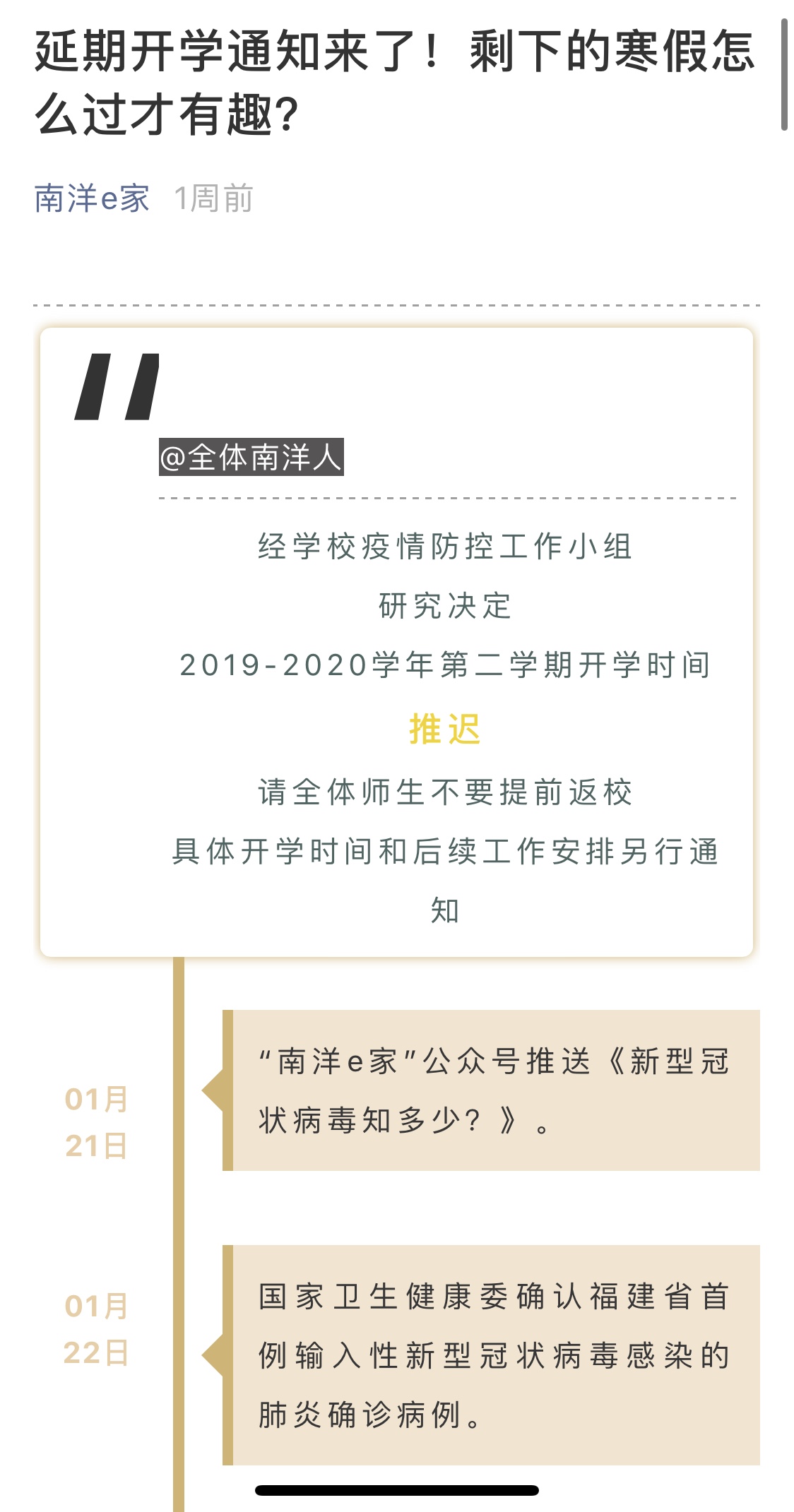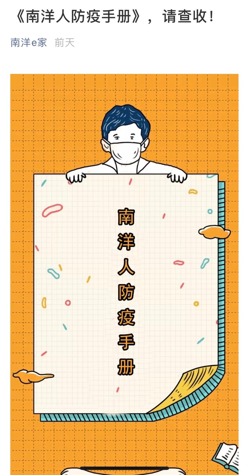 在这个特别的春节里,在这场没有硝烟的疫情防控狙击战中,全体南洋人在习近平同志为核心的党中央坚强领导下,共克时艰,众志成城,排除万难,多措并举,联防联控,以誓死的决心坚守使命,守好责任田,护好一校人,同全国人民一道筑牢防线。